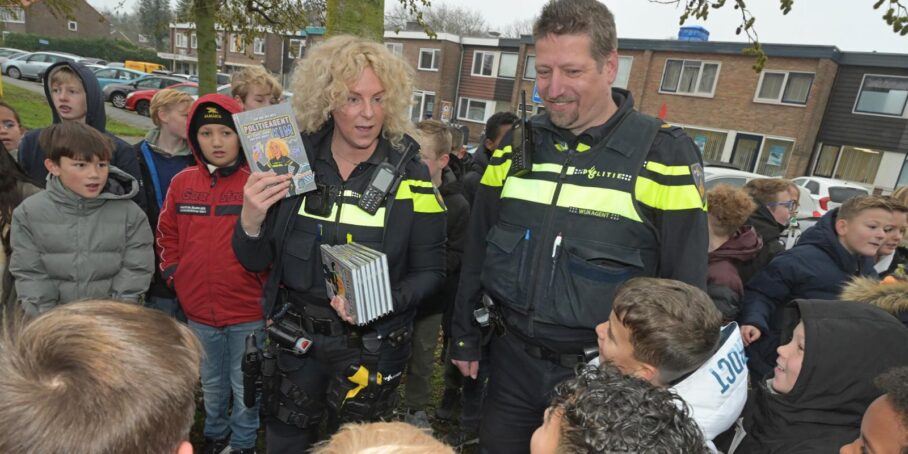 Uithoorn – De leerlingen van basisschool Het Duet in Uithoorn hadden een enerverende ochtend donderdag. Politieagent Kim van der Weij kwam haar nieuwe boek presenteren en deed dat op spectaculaire wijze. Onder het mom dat er een verdacht pakket op het schoolplein zou liggen, reed ze in een politieauto met loeiende sirenes het schoolplein op.