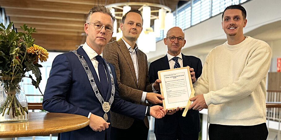 Aalsmeer – In het Aalsmeerse raadhuis is donderdag een petitie over de verkeersveiligheid rond de rotondes aangeboden aan het gemeentebestuur. Initiatiefnemer Robin Cardoso de Bastos overhandigde de petitie, die in slechts enkele dagen 3.210 handtekeningen verzamelde. De petitie werd in ontvangst genomen door plaatsvervangend raadsvoorzitter Dirk van Willegen, verkeerswethouder Bart Kabout en burgemeester Gido Oude Kotte.