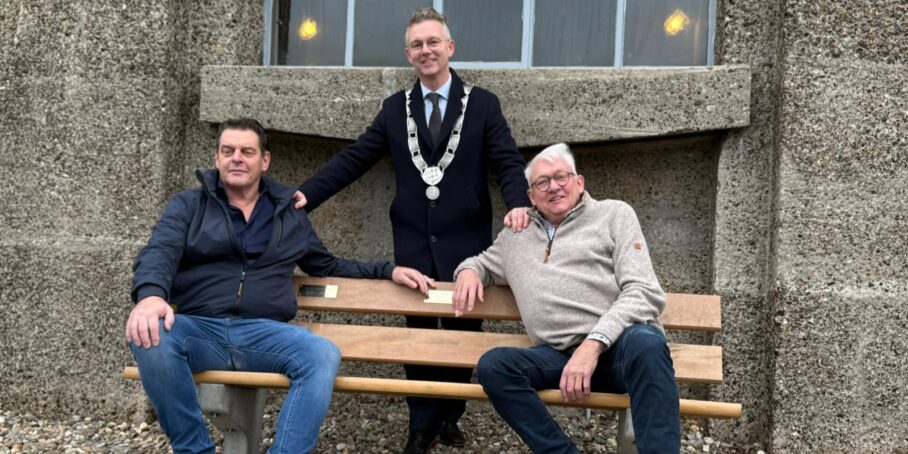 Aalsmeer – Op maandag 8 december is een bijzonder eerbetoon onthuld bij de Watertoren. Mike van der Laarse en Ap Eigenhuis, jarenlang de drijvende krachten achter het evenement Vuur & Licht op het Water, kregen daar een eigen bankje aangeboden. De twee organiseerden het evenement met grote inzet en deden dat dit jaar vo or het laatst. Tijdens de meest recente editie beloofde burgemeester Gido Oude Kotte hen daarom een blijvende herinnering aan hun werk.