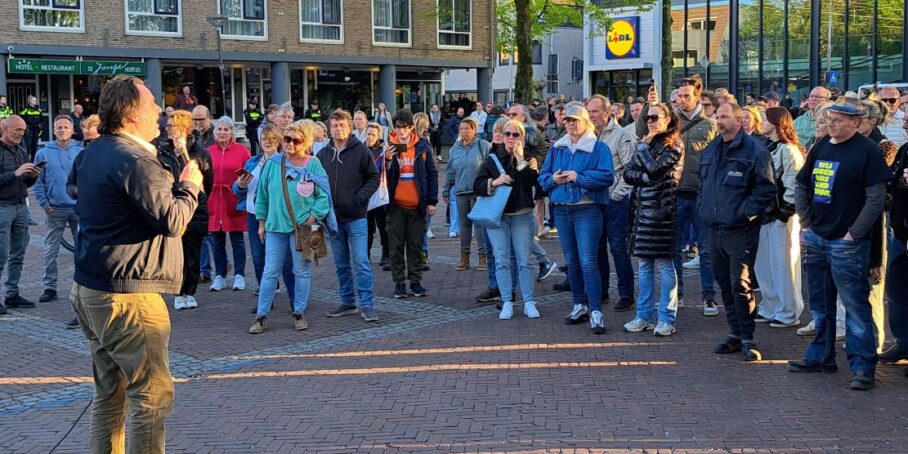 Aalsmeer – Op het Raadhuisplein in Aalsmeer hebben dinsdagavond ongeveer 200 mensen geprotesteerd tegen de tijdelijke opvang van 40 statushouders in Hotel Restaurant De Jonge Heertjes.