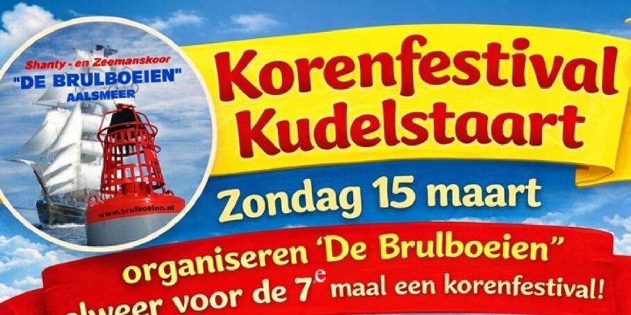 In Kudelstaart vindt op zondag 15 maart een korenfestival plaats in Dorpshuis Het Podium. Tijdens de middag treden drie koren op voor het publiek.